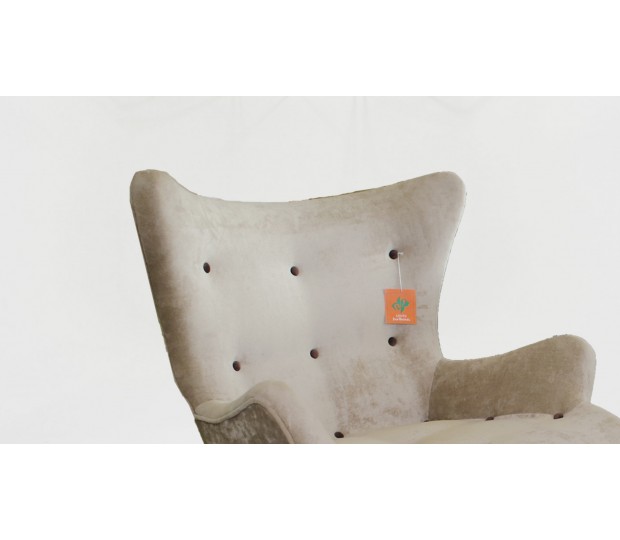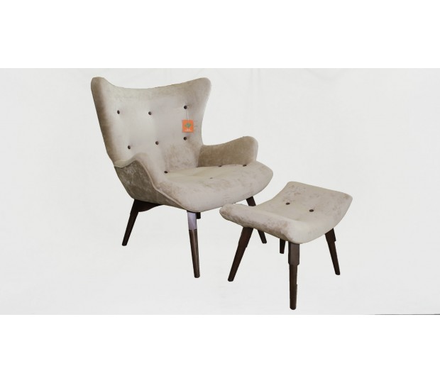 Butaca diseñada por Grant Featherston, uno de sus diseños clásicos, en este caso tapizada en lana camel con abotonaduras. La forma redondeada del asiento proporciona el máximo confort. Se inserta en una estructura de madera maciza de haya y se cubre con tela de alta calidad. Incluye un reposapies a juego, exento, utilizable como puff. Creada por uno de los más celebres diseñadores de muebles del siglo XX.